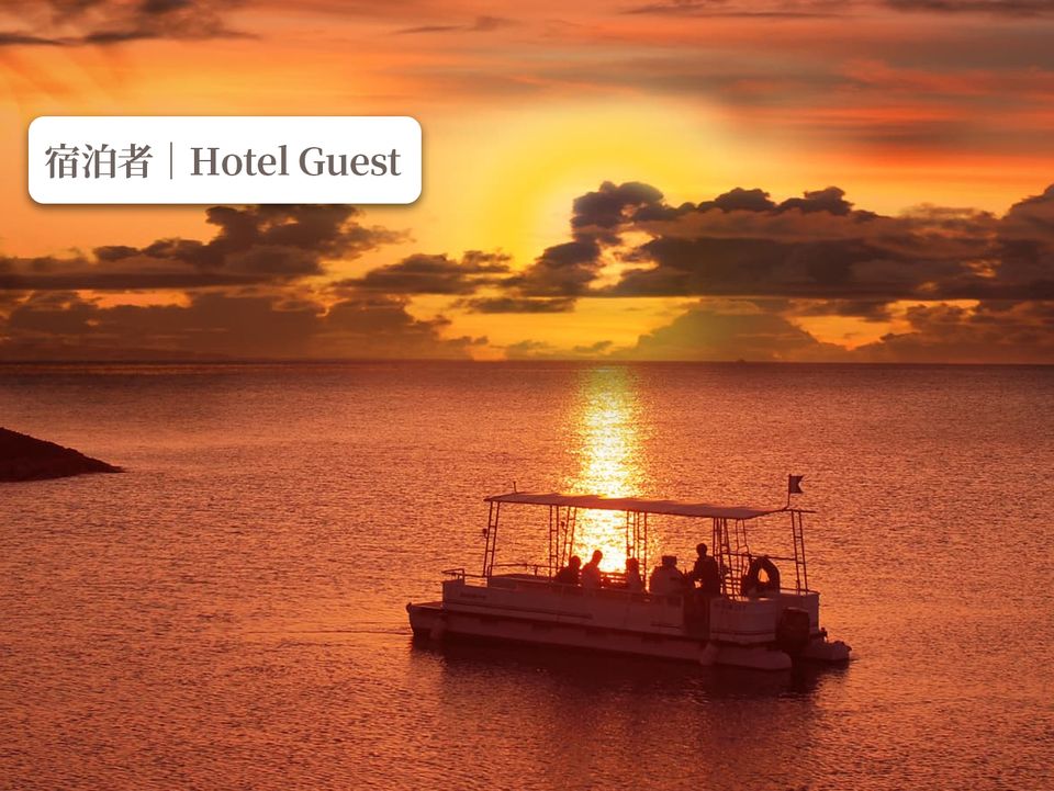 【Notice】 From December 1, 2025 to May 31, 2026 Due to hotel renovation work, the entire facility will be closed. As a result, we will suspend sales at guest rates. Outside visitors will be permitted. For reservations during the above period, please book via the visitor menu. ◆◇◆◇◆◇◆◇◆◇◆◇◆◇◆◇◆◇◆◇◆◇◆◇◆◇◆◇◆◇◆◇ Indulge in a luxurious sunset cruise departing from the resort marina. As the sun sets, the sky and sea are dyed orange, creating a fantastical landscape. Why not gaze at the sun slowly sinking into the East China Sea from aboard a cruiser gliding gently on the calm sea breeze? Whether you're with friends, as a couple, with family, or even solo, feel free to join us. We invite you to enjoy this supreme sunset experience as a memorable part of your journey. 【Period】Year-round 【Time】4:30 PM ~ 6:30 PM (Departure times may vary by season.) (Please arrive 15 minutes prior) 【Fees】Adults: ¥5,500 / Ages 4-12: ¥3,850 / Ages 3 and under: Free 【Payment Methods】Pay on-site / Pre-payment (Credit Card) / Charge to Room 【Meeting Point】Beach Counter, 1st Floor, Wellness & Spa, Hotel Grounds 【Notes】Includes one drink 【Online Reservations】Available from 60 days prior to the event date until 1 hour before departure. ※Reservations close once capacity is reached. We recommend booking early. ※Phone reservations are not accepted. 【Other Information】 ※Duration: 60 minutes ※Cruise takes place around the Sun Marina Hotel. ※After your reservation is confirmed, we require you to submit a passenger list in advance. ※Tax is included in the price. ※Sunset may not be visible due to weather conditions. ※The boat may rock on some days. We recommend taking motion sickness medication in advance if you are prone to seasickness. ※Operations may be canceled or departure times, capacity limits, age restrictions, etc., may change due to weather, sea conditions, or other circumstances. ※Menu contents, prices, etc., may change without prior notice. ※In severe weather, a decision to cancel or proceed will be made 30 minutes before departure. ※If you have an invitation, coupon, or special offer, please select on-site payment. The participation fee will be displayed in your application details, but you can use your special offer at check-in. Please bring your special offer to the beach counter on the day. :For Visitors, please click here ⇩ https://sunmarina.book.ntmg.com/products/a513b39e-9322-5b18-bd7e-880e2f4d81e3?lng=en-US ◆◇◆◇◆◇◆◇◆◇◆◇◆◇◆◇◆◇◆◇◆◇◆◇◆◇◆◇◆◇◆◇ 【Cancellation Policy】 ※For cancellations due to customer circumstances: ・2 days prior to participation date after 5:30 PM: 50% ・1 day prior to participation date after 5:30 PM: 100% ※Cancellation procedures must be completed by phone. (Beach Counter Hours: 8:30 AM - 5:30 PM)