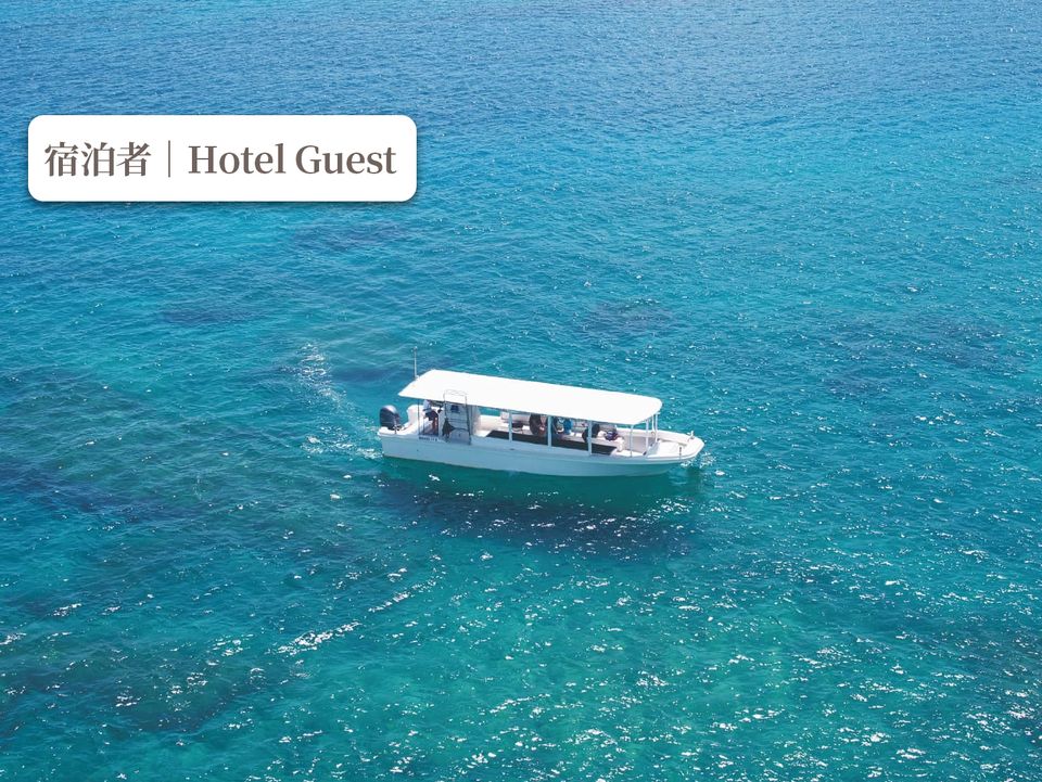 【Notice】 From December 1, 2025 to May 31, 2026 Due to hotel-wide renovations, we will suspend sales at guest rates. Outside visitors will be permitted. If you wish to make a reservation during the above period, please book via the visitor menu. ◆◇◆◇◆◇◆◇◆◇◆◇◆◇◆◇◆◇◆◇◆◇◆◇◆◇◆◇◆◇◆◇ A glass-bottom boat features a glass panel in the hull, allowing passengers to get an up-close look at tropical fish and the underwater world. It's perfect for anyone who finds snorkeling a bit challenging, young children, guests with physical disabilities, or anyone looking for an easy way to enjoy the underwater world. You can observe coral and colorful tropical fish not only on sunny days, but also on cloudy or rainy days. There are 6 departures per day, each lasting 30 minutes. 【Operating Period】Year-round 【Scheduled Times】9:00 AM/10:00 AM/11:00 AM/1:00 PM/2:00 PM/3:00 PM (Please arrive 15 minutes prior) 【Fees】Adults: ¥3,300 / Ages 4-12: ¥2,200 / Ages 3 and under: Free 【Payment Methods】Payment on site / Advance payment (Credit card) / Charge to room 【Meeting Place】Beach Counter, 1st Floor, Wellness & Spa, Hotel Grounds 【Notes】 【Online Reservations】Available from 60 days prior to the event date until 1 hour before the event time. ※Reservations close once capacity is reached. We recommend booking early. ※Reservations cannot be made by phone. 【Other】 ※Duration: 30 minutes ※The activity takes place in the sea in front of Sun Marina. ※After your reservation is confirmed, we require you to submit a passenger list in advance. ※Prices include consumption tax. ※Please note that the boat may rock on some days. If you are prone to seasickness, we recommend taking motion sickness medication beforehand. ※Operations may be canceled or departure times, capacity, age restrictions, etc., may change due to weather, sea conditions, or other circumstances. ※Menu contents, prices, etc., may change without prior notice. ※In severe weather, a decision to cancel or proceed will be made 30 minutes before departure. :For Visitors, please click here ⇩ https://sunmarina.book.ntmg.com/products/075c1311-0bc9-5f12-9389-40fa7d1ddb87?lng=en-US ◆◇◆◇◆◇◆◇◆◇◆◇◆◇◆◇◆◇◆◇◆◇◆◇◆◇◆◇◆◇◆◇ 【Cancellation Policy】 ※For cancellations due to customer circumstances: ・2 days prior to participation date, after 5:30 PM: 50% ・1 day prior to participation date, after 5:30 PM: 100% ※Cancellation procedures must be completed by phone. (Beach Counter Hours: 8:30 AM - 5:30 PM)