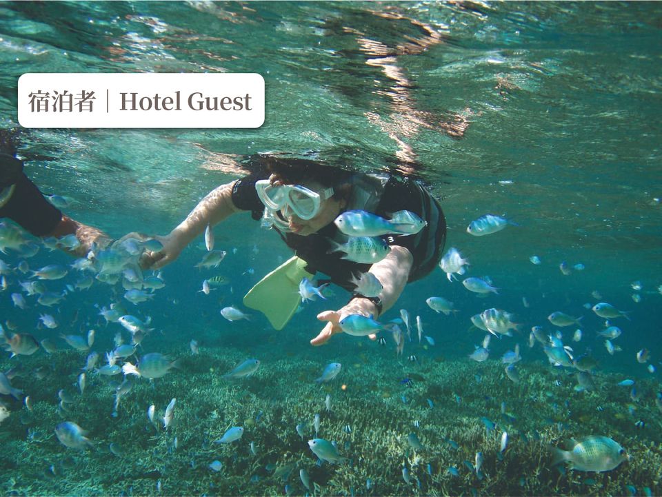 【Notice】 From December 1, 2025 to May 31, 2026 Due to hotel-wide renovations, we will suspend sales at guest rates. Outside dining will remain available. If you wish to make a reservation during the above period, please book via the visitor menu. ◆◇◆◇◆◇◆◇◆◇◆◇◆◇◆◇◆◇◆◇◆◇◆◇◆◇◆◇◆◇◆◇ Our experienced captain will guide you to the best spots based on the day's sea conditions. Enjoy the unique scenery of Onna Village's ocean, featuring colorful tropical fish and beautiful coral reefs. Children aged 6 and up can participate, making it an easy and enjoyable activity for the whole family. It's perfect for creating memories on your family trip. Snorkeling tours are available year-round!!! With a compact duration of 90 minutes, this plan is easy to fit into your sightseeing schedule. Why not experience the crystal-clear waters of Onna Village with your whole body :) 【Period】Year-round 【Times】9:00 AM / 1:30 PM (Please arrive 15 minutes prior) 【Price】¥7,700 ※Children are charged the same rate. (Ages 6 and up) 【Payment】Pay on-site / Pre-payment (Credit Card) / Charge to Room 【Meeting Point】Wellness & Spa, 1st Floor, Beach Counter (Within the hotel grounds) 【What to Bring】Swimsuit・Beach sandals 【Notes】Includes snorkel mask, fins, life jacket,wetsuit, and drink 【Option】Rental Underwater Camera: Unlimited Photos and Videos (¥4,400 includes complimentary SD card) ■Experience Flow■ 8:45 AM (1:30 PM) Meet at the Beach Counter Please use the parking lot within the Sheraton grounds. 8:50 AM (1:20 PM) Reception, Payment, Equipment Sizing 9:00 AM (1:30 PM) Departure Depart from the hotel marina and travel by boat to the snorkeling spot. 9:15 AM (1:45 PM) ~ 10:00AM (2:30 PM) Arrive at snorkeling spot Enjoy approximately 40 minutes of snorkeling. 10:00AM (2:30 PM) Experience ends 10:20AM (2:50 PM) Return to pier 10:30AM (3:00 PM) End of Tour Meet at the beach counter to disband 【Online Reservations】Available from 60 days prior to the event date until 1 hour before the event starts. ※Reservations will close once capacity is reached. We recommend booking early. ※We do not accept reservations by phone. 【Other】 ※Duration: 90 minutes ※The boat ride takes 5 to 15 minutes one way. (The location may vary depending on sea conditions on the day) ※Prices include consumption tax. ※Please note that the boat may rock on some days. If you are prone to seasickness, we recommend taking motion sickness medication beforehand. ※Operations may be canceled or departure times, capacity limits, age restrictions, etc., may be changed due to weather, sea conditions, or other circumstances. ※Menu contents, prices, etc., may be changed without prior notice. ※In case of severe weather, a decision to cancel or proceed will be made 30 minutes before departure. ※Pregnant guests are kindly asked to refrain from participating. ※If you plan to use the hotel facilities before check-in, please obtain your access key at the front desk. :Blue Cave Snorkeling Tour is here ⇩ https://sunmarina.book.ntmg.com/products/ad8ed6cf-ba03-5e5d-88ca-30df656fba03?lng=en-US :Visitors Boat Snorkeling Tours: Click Here⇩ https://sunmarina.book.ntmg.com/products/e89d687e-90be-570c-ad77-2d65c27e2c9b?lng=en-US ◆◇◆◇◆◇◆◇◆◇◆◇◆◇◆◇◆◇◆◇◆◇◆◇◆◇◆◇◆◇◆◇ ※Cancellations due to customer circumstances ・After 5:30 PM two days prior to participation date: 50% ・After 5:30 PM one day prior to participation date: 100% ※Cancellations must be made by phone. (Beach counter hours: 8:30 AM to 5:30 PM)