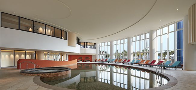 ビーチに面した明るく自然光の差し込む屋内プール。ジェット噴流バスやキッズプールも完備しているので、ゆったりとくつろぎながらスイミングをお楽しみいただけます。 場所 :ウェルネス&スパ ぬちぐすい 1階 営業時間:9:00 AM-8:00 PM ※状況により変更される場合がございます。 料金:リゾートパスに含む 施設情報:水深:1.2m 水温(冬):30℃