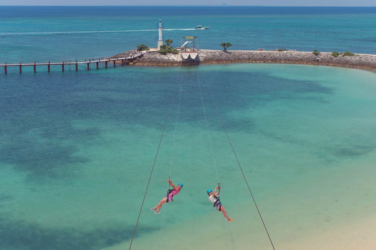 全長約250mの海上を滑走するジップライン。スリルと海・砂浜の美しい風景をお楽しみください。 営業時間: 午前の部(9:00 AM-12:00 PM) 午後の部(2:00 PM-5:00 PM) 安全を考慮し、天候により営業中止となる場合もございます。 2025年11月28日(金)~11月29日(土)の期間中は、営業を休止いたします。 利用料金:2,750円 受付・支払:ビーチプレイカウンターで支払い完了後、ジップラインの受付へ。 備考:年齢・身長制限なし。 体重:25㎏~130㎏ (風の状況により安全上40㎏未満のお客様はご体験できない場合がございます。) ハーネスがきちんとフィットしなければ参加不可。 ※事前のご予約は受け付けておりません、直接現地へお越しください。 ※料金には消費税が含まれています。